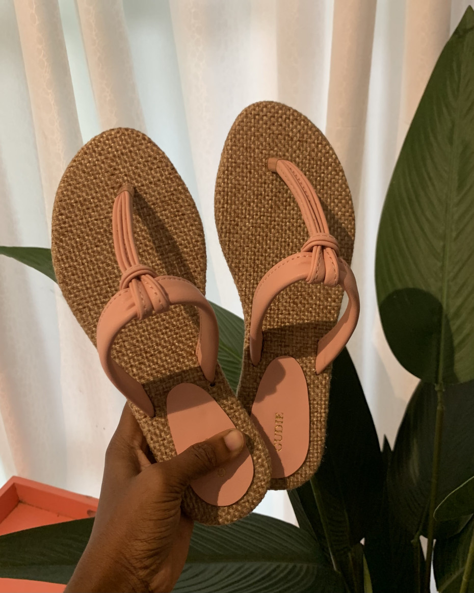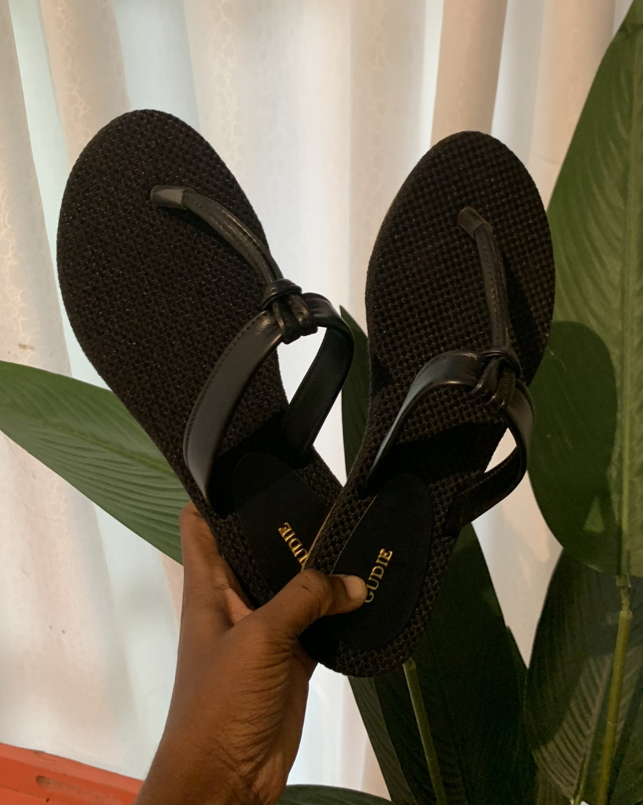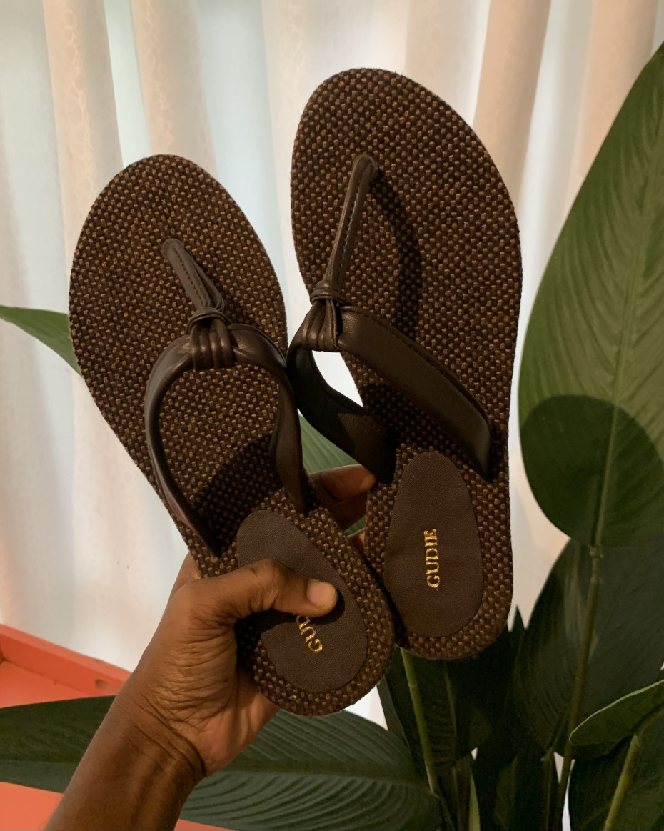 Gudie Cylindrical thong UPPER: 100% polyurethane SOLE: 100% Crepe sole INSOLE: 100% polyurethane and Jute Fabric 4-5 weeks for production.